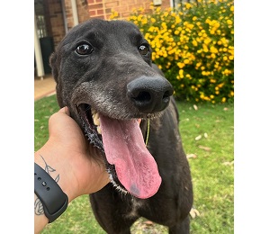 He would prefer a fur friend (dogs only) in the home or share his space with another greyhound.